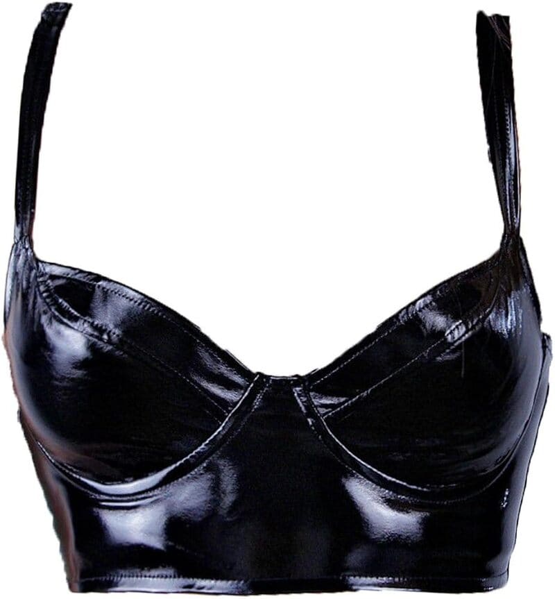 This class covers all the high-gloss opaque "statement" materials used in fetish-inspired and fashion-forward lingerie: genuine leather, faux leather (polyurethane), vinyl (PVC), and latex (natural or synthetic rubber).